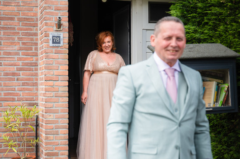 Ze kozen voor een kortere bruidsreportage: van first look tot en met de ceremonie en groepsfoto's. Compact, persoonlijk, en precies wat bij hen paste. Dat is ook een optie in mijn trouwfotografie pakketten - niet ieder bruidspaar wil of heeft een hele dag fotografie nodig.